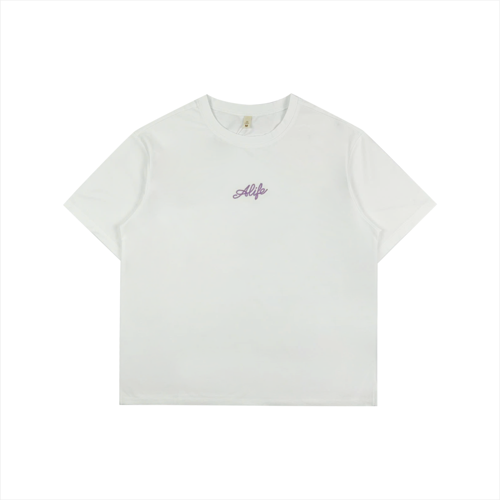 Áo cổ tròn nữ PAPKA 3059 chất Cotton lạnh màu trắng thêu chữ Alife trẻ trung rộng rãi