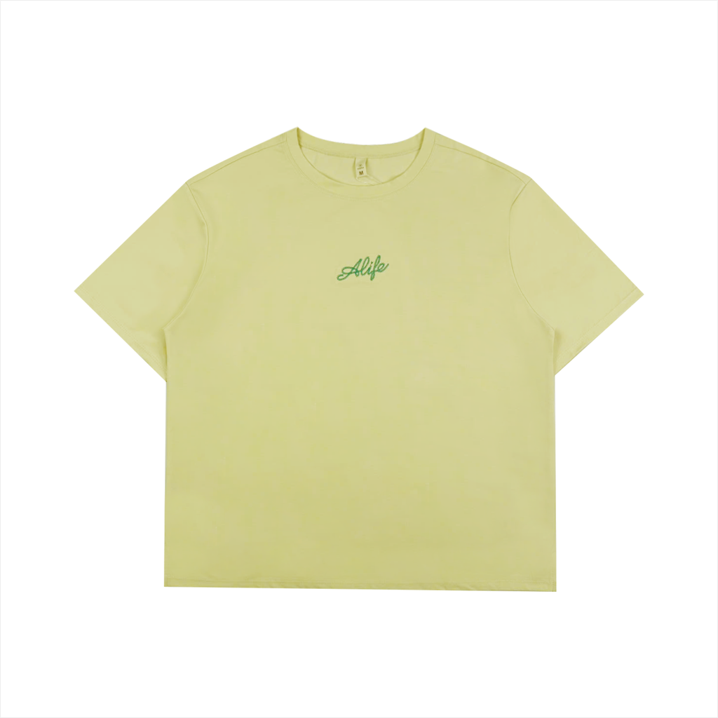 Áo cổ tròn nữ PAPKA 3059 chất Cotton lạnh màu vàng thêu chữ Alife trẻ trung rộng rãi