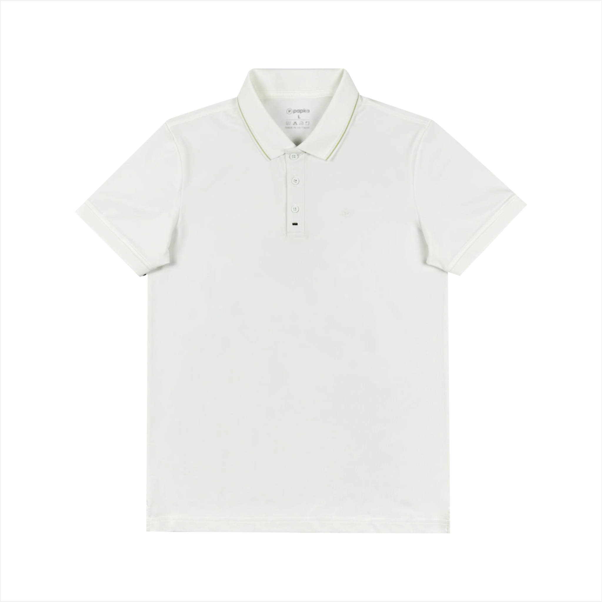 Áo polo nam cao cấp PAPKA 1121 màu trắng phối sọc nhuyễn bo cổ tạo điểm nhấn trẻ trung, chất Poly Pique co dãn và thấm hút tốt