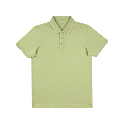 Áo polo nam cao cấp PAPKA 1121 màu xanh bơ phối sọc nhuyễn bo cổ tạo điểm nhấn trẻ trung, chất Poly Pique co dãn và thấm hút tốt
