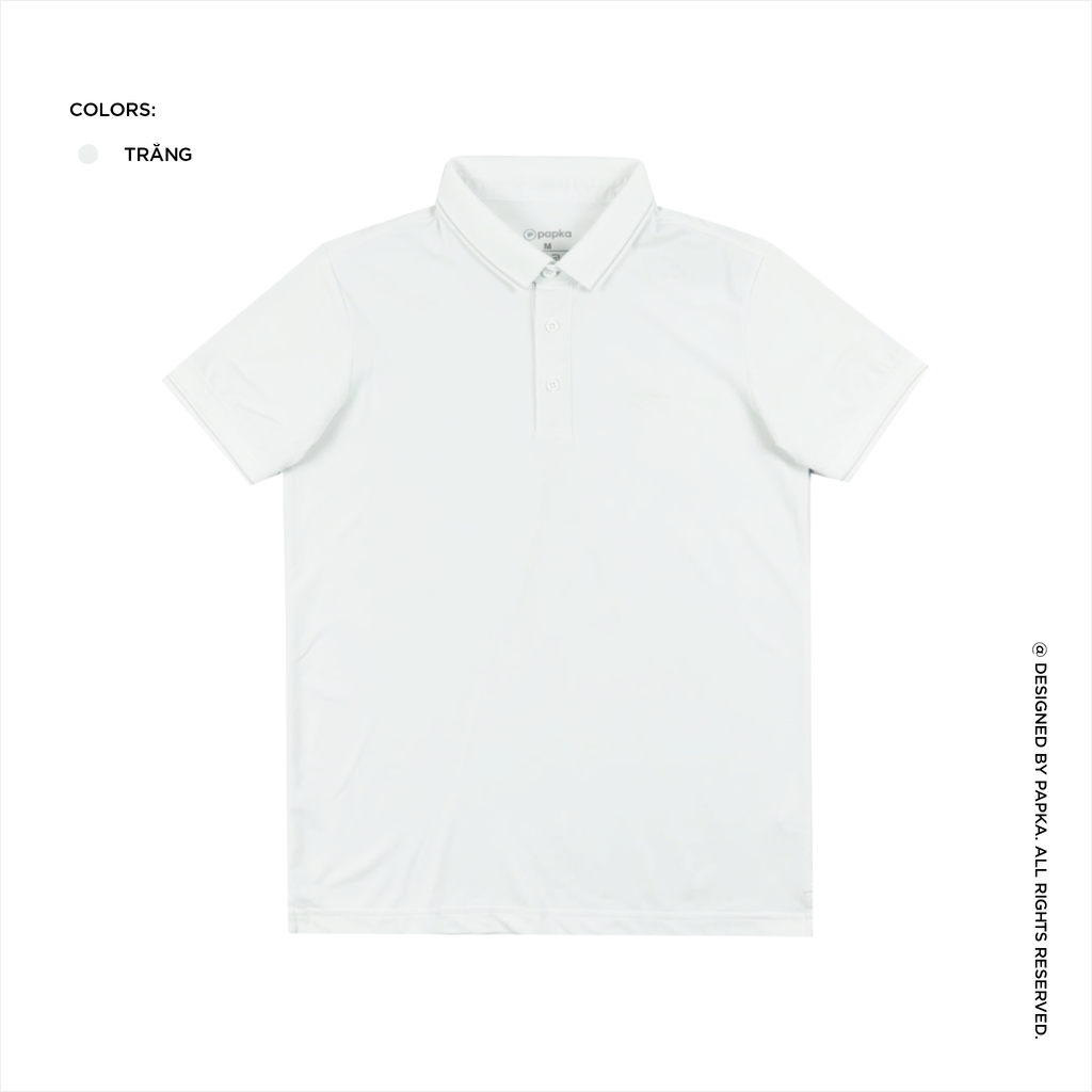 Áo polo nam PAPKA 1097 màu trắng chất vải cotton Pique tổng hợp mỏng nhẹ thoáng mát