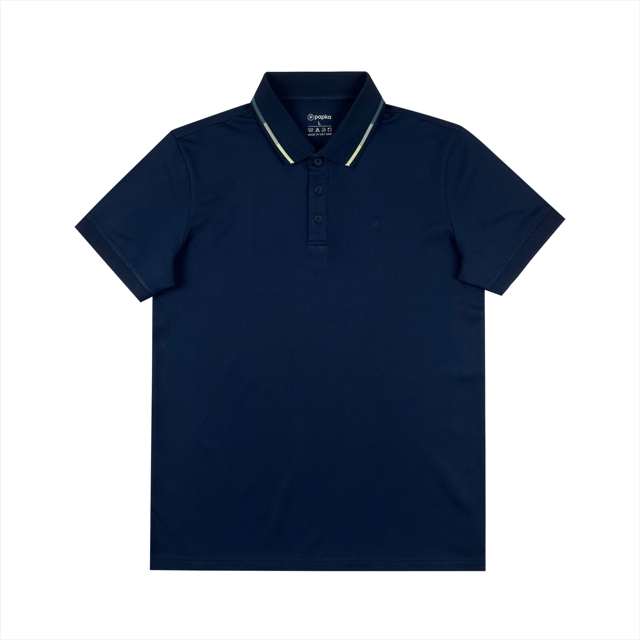 Áo polo nam Papka 1121 màu xanh đen đất phối viền bo cổ với chất poly pique cao cấp tăng độ thoáng khí năng động nhưng vẫn thanh lịch