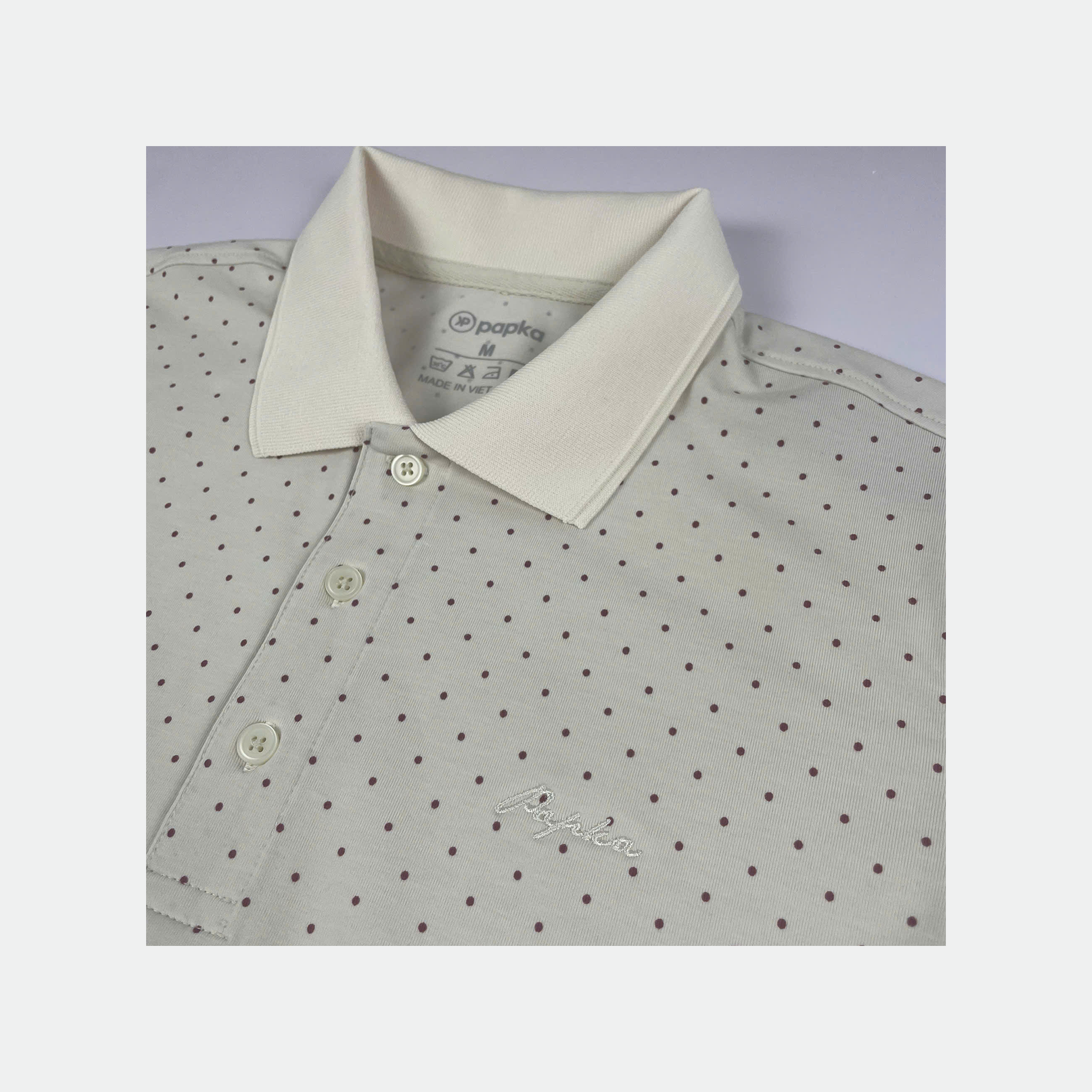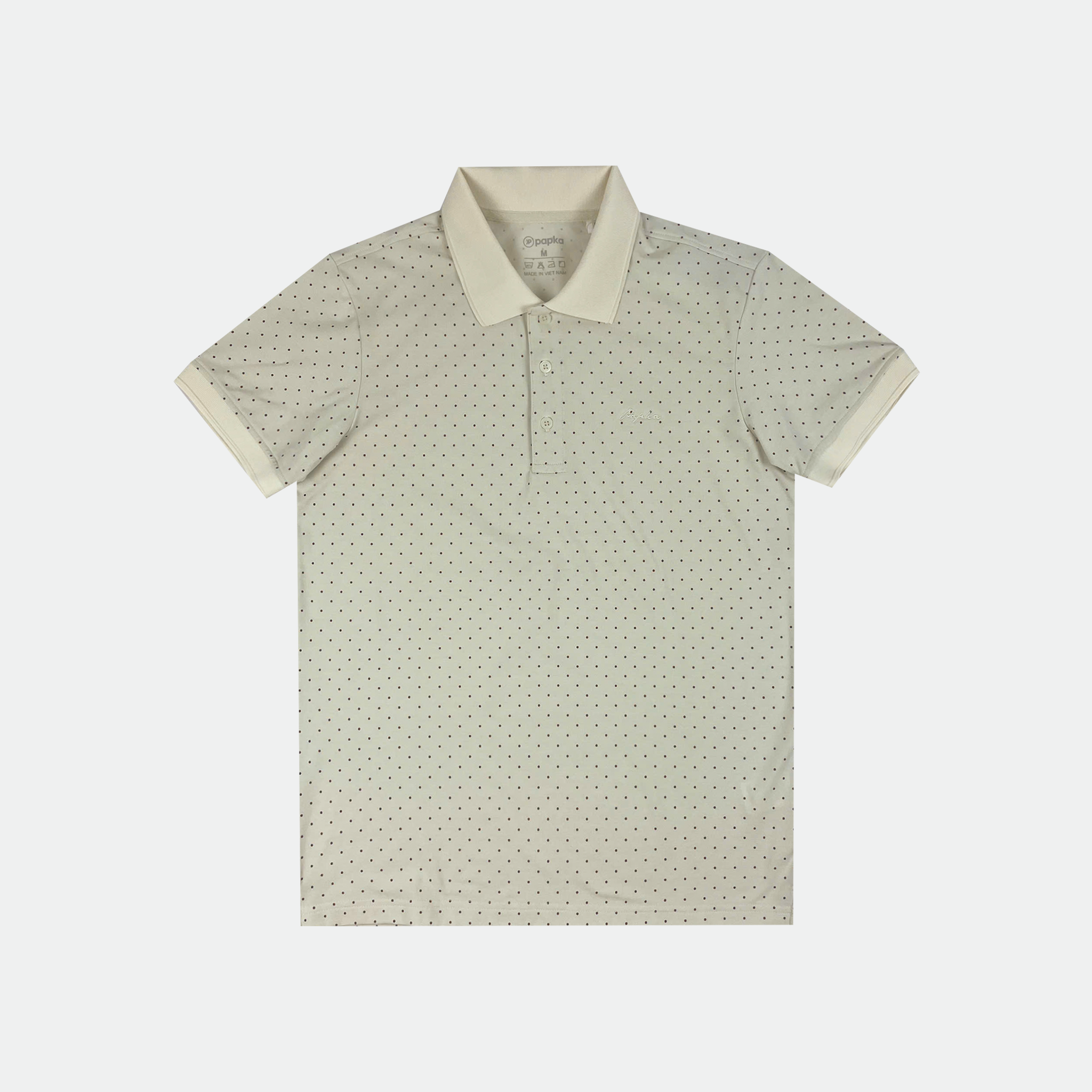 Áo polo nam Papka 1122 họa tiết chấm bi màu kem trung tính, họa tiết nhẹ nhàng, tạo vẻ tinh tế và dễ phối đồ