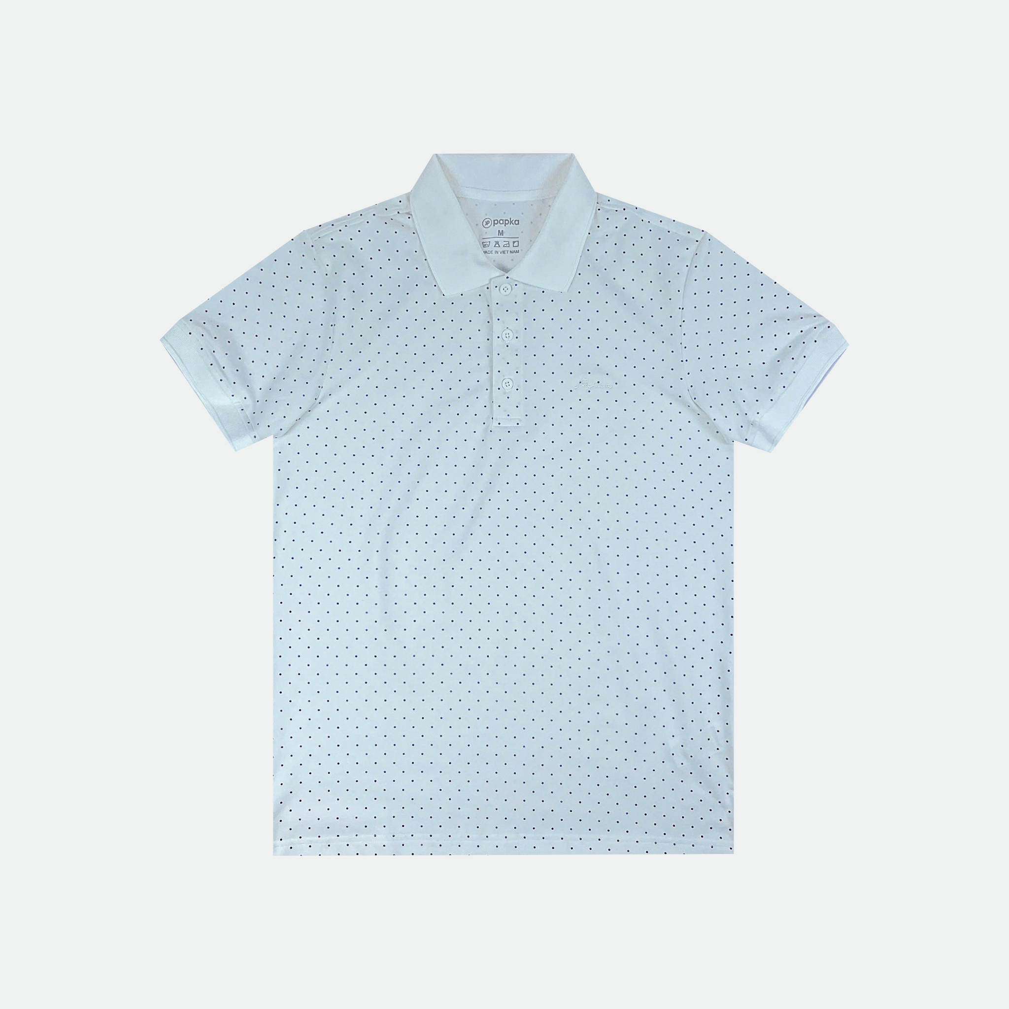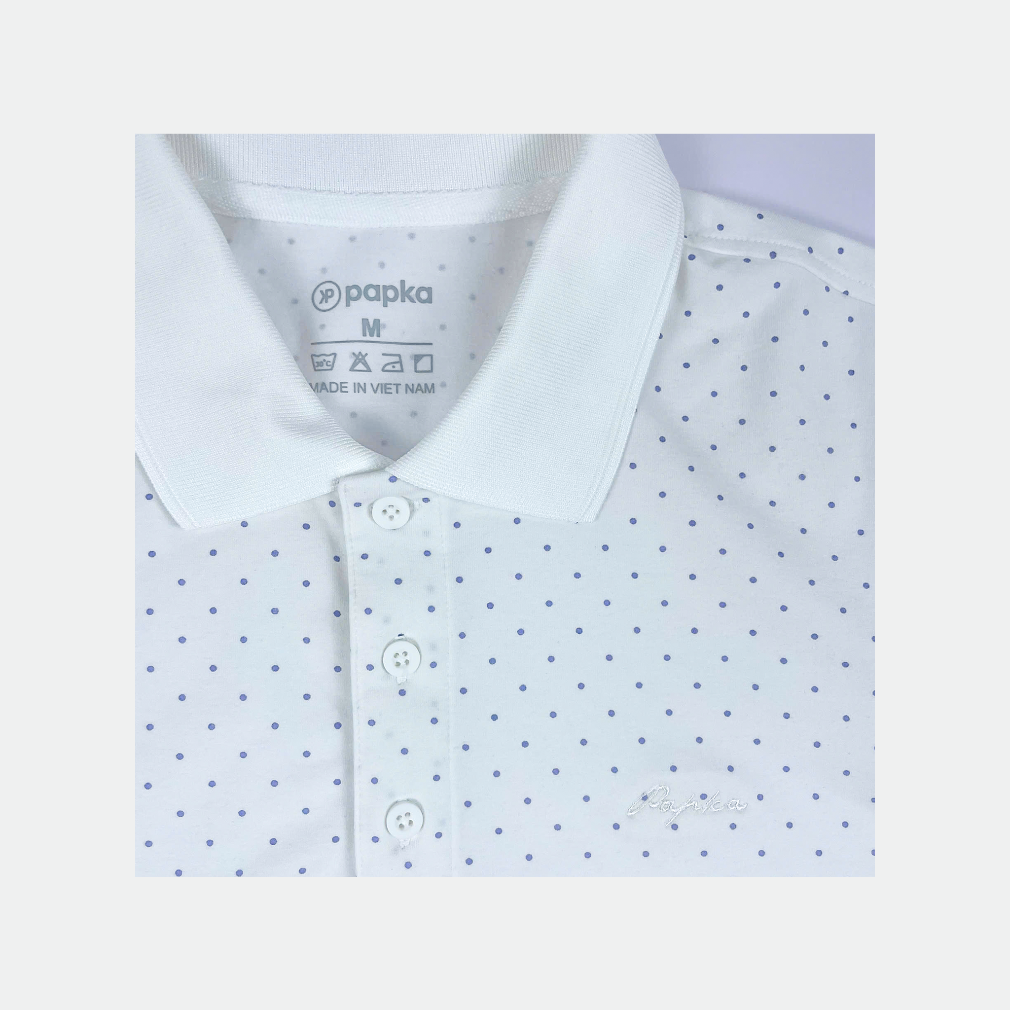 Áo polo nam Papka 1122 họa tiết chấm bi màu trắng thanh khiết mang cảm giác tươi mới, trẻ trung