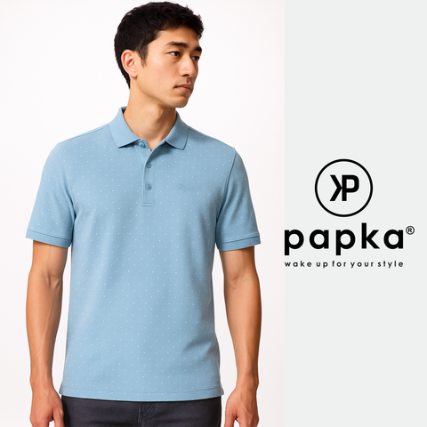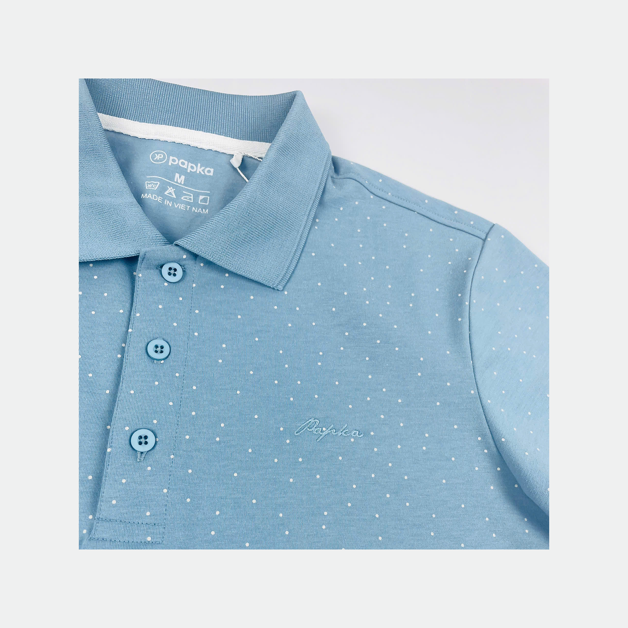 Áo polo nam Papka 1122 họa tiết chấm bi màu xanh biển pastel, nhẹ mắt, rất hợp với phong cách năng động