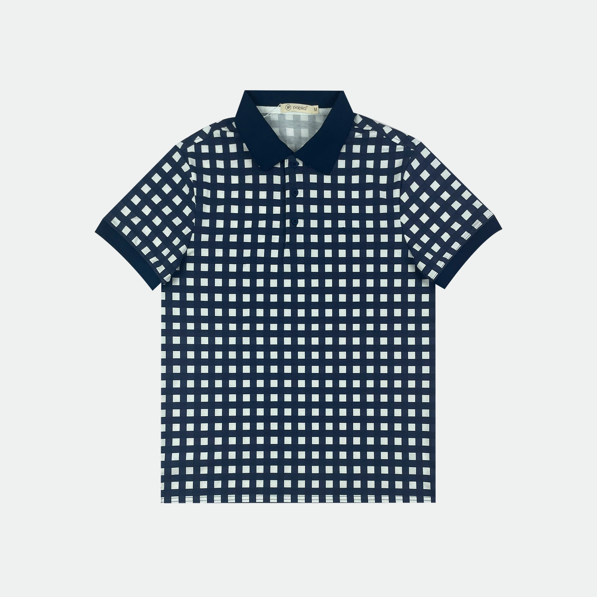 Áo polo nam Papka 1122 họa tiết Gingham màu xanh đen mạnh mẽ, dễ phối và phù hợp phong cách casual