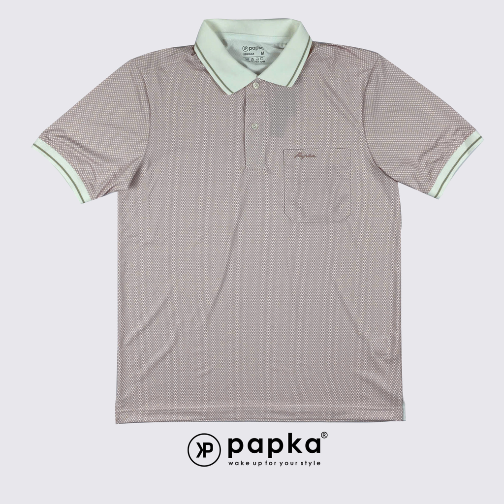Áo polo nam Papka 1122 màu hồng monogram cổ điển, form Regular rộng rãi, phối bo cổ trắng trẻ trung hiện đại
