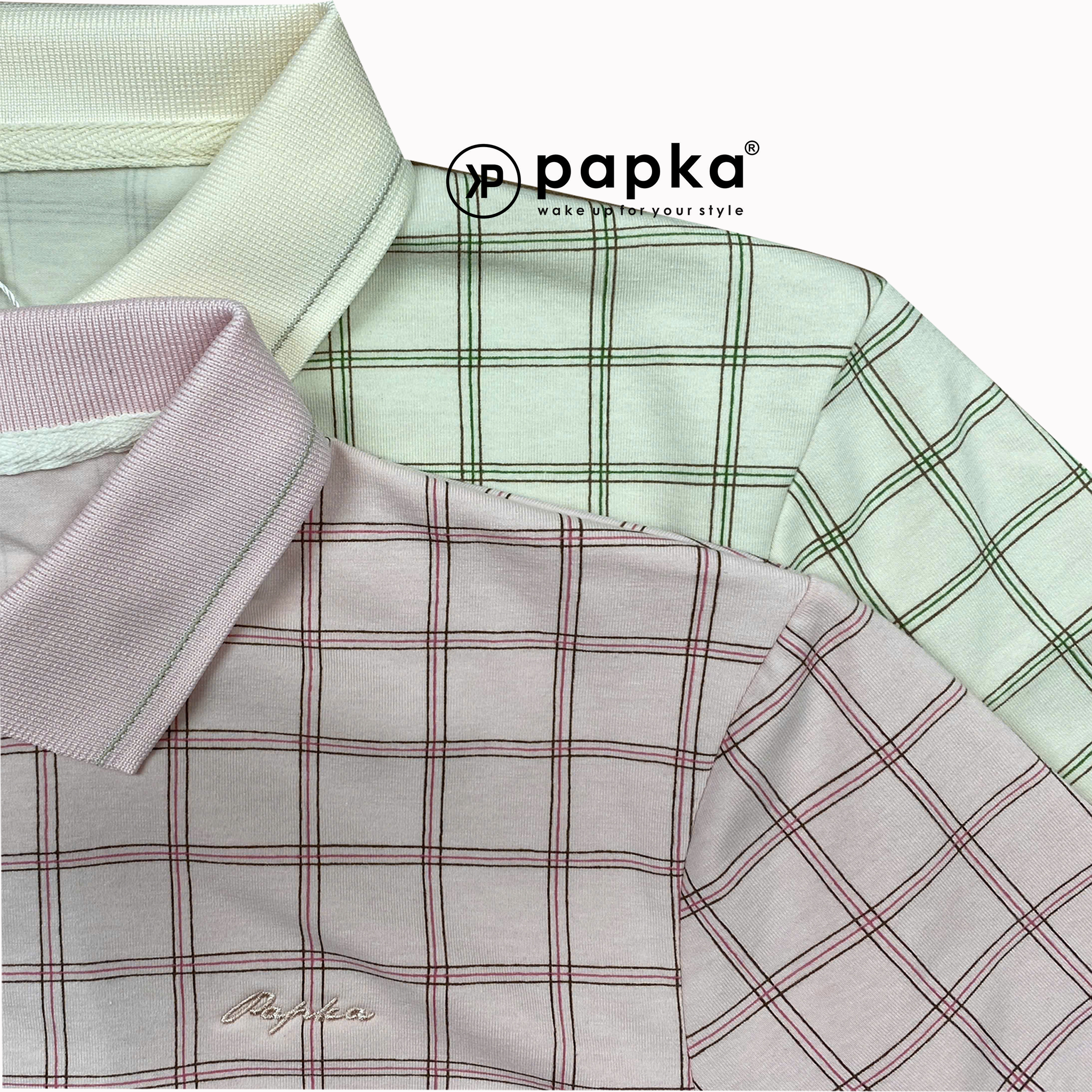 Áo polo nữ Papka 3056 sọc caro kem form rộng rãi thoải mái và trẻ trung năng động
