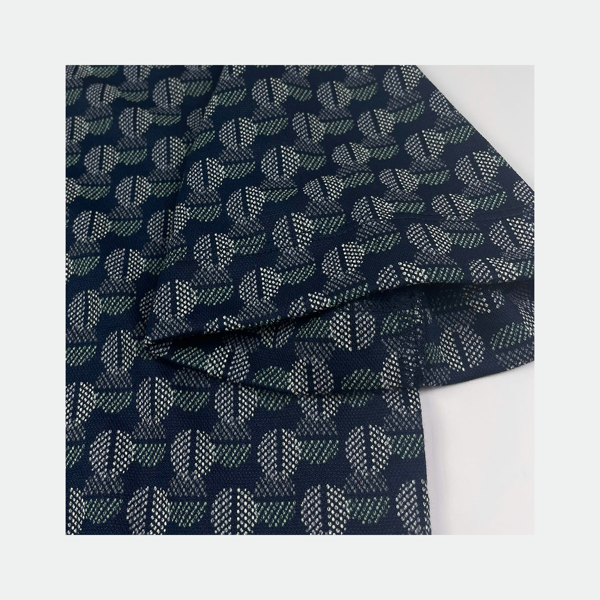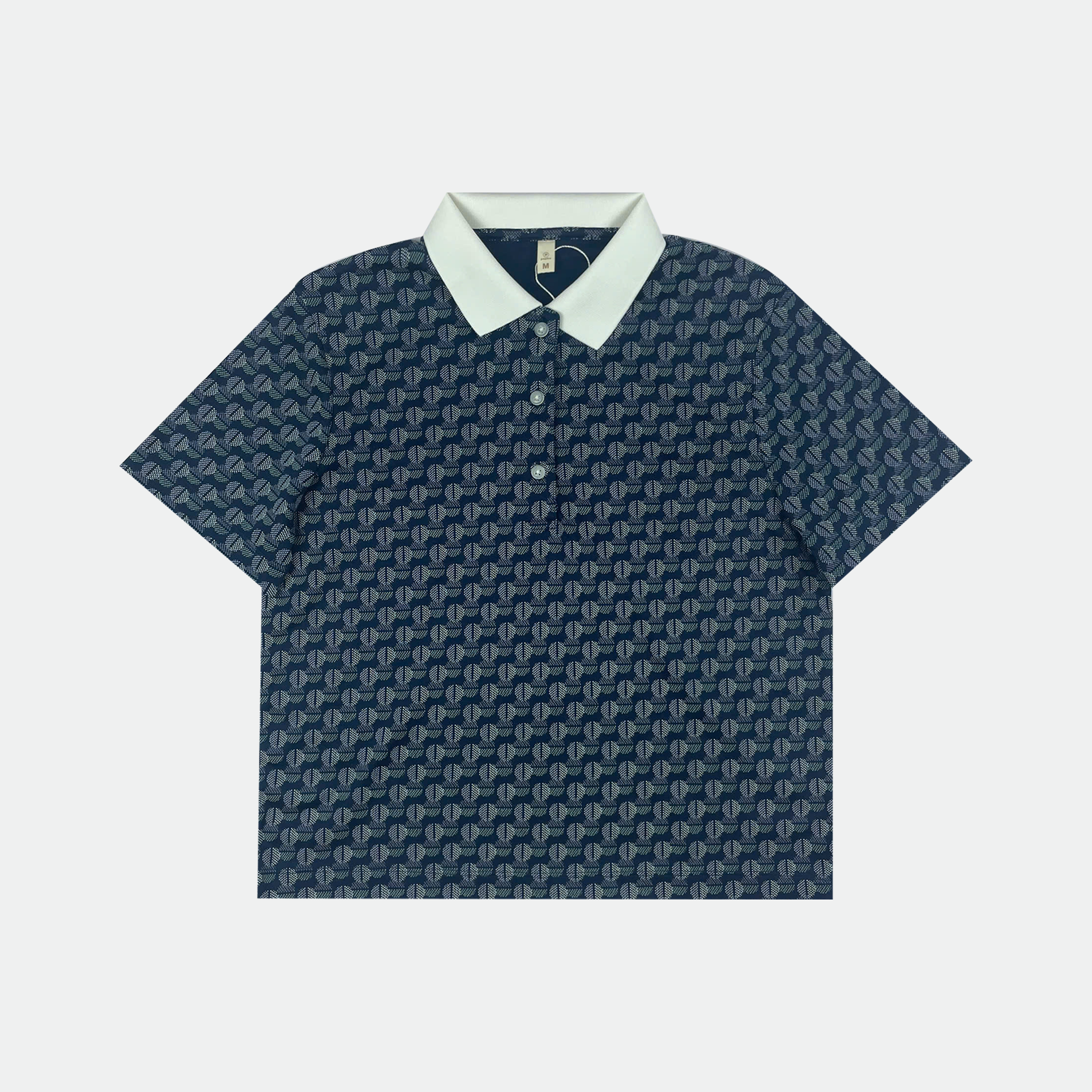 Áo polo nữ Papka 3056 vải Jacquard hoa lá trừu tượng nền xanh navy lạ mắt