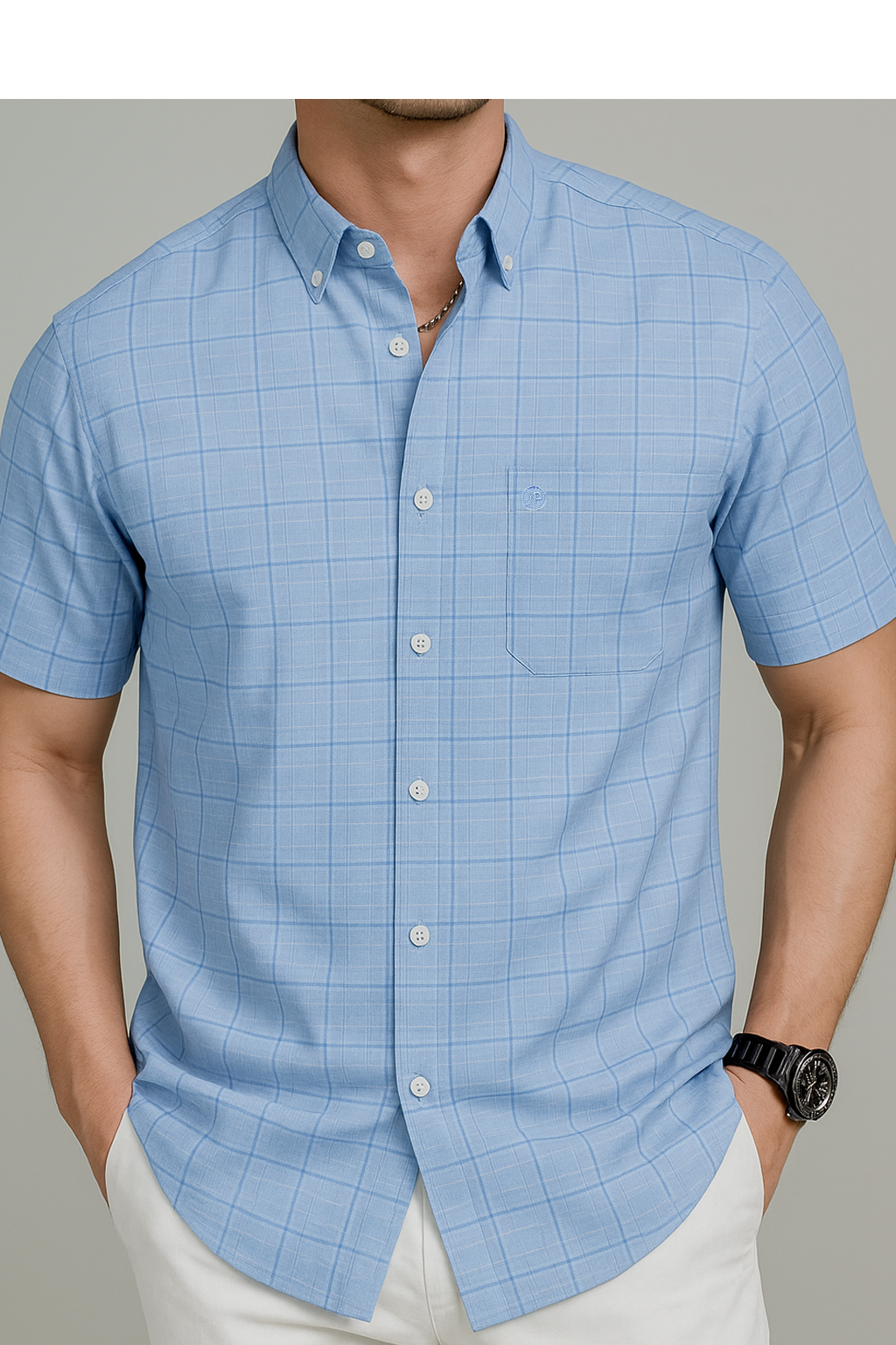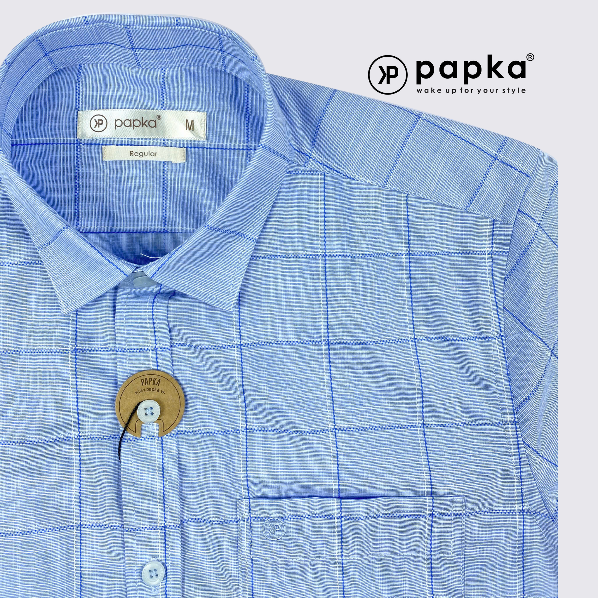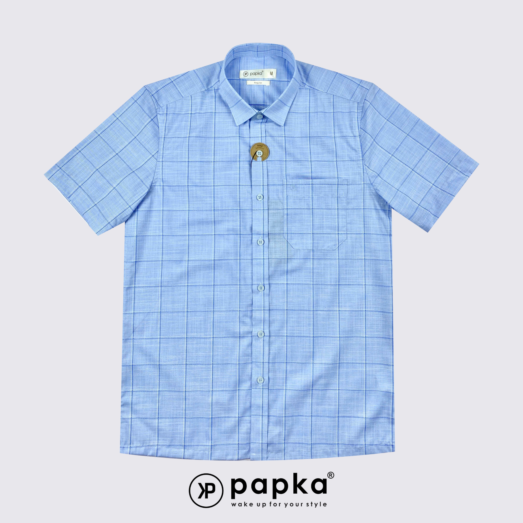 Áo sơ mi nam tay ngắn Papka 1123 màu xanh biển sọc caro bản to cổ điển, trẻ trung và lịch sự