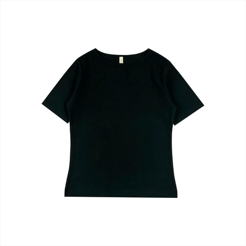 Áo thun nữ Papka 3032 màu đen nhẹ nhàng cổ thuyền nữ tính chất thun gân co dãn dễ chịu