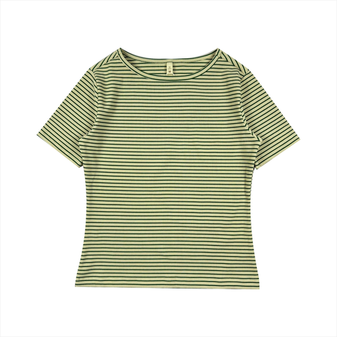 Áo thun nữ PAPKA 3032 màu kem sọc xanh lá chất thun gân cotton co giãn linh hoạt trẻ trung