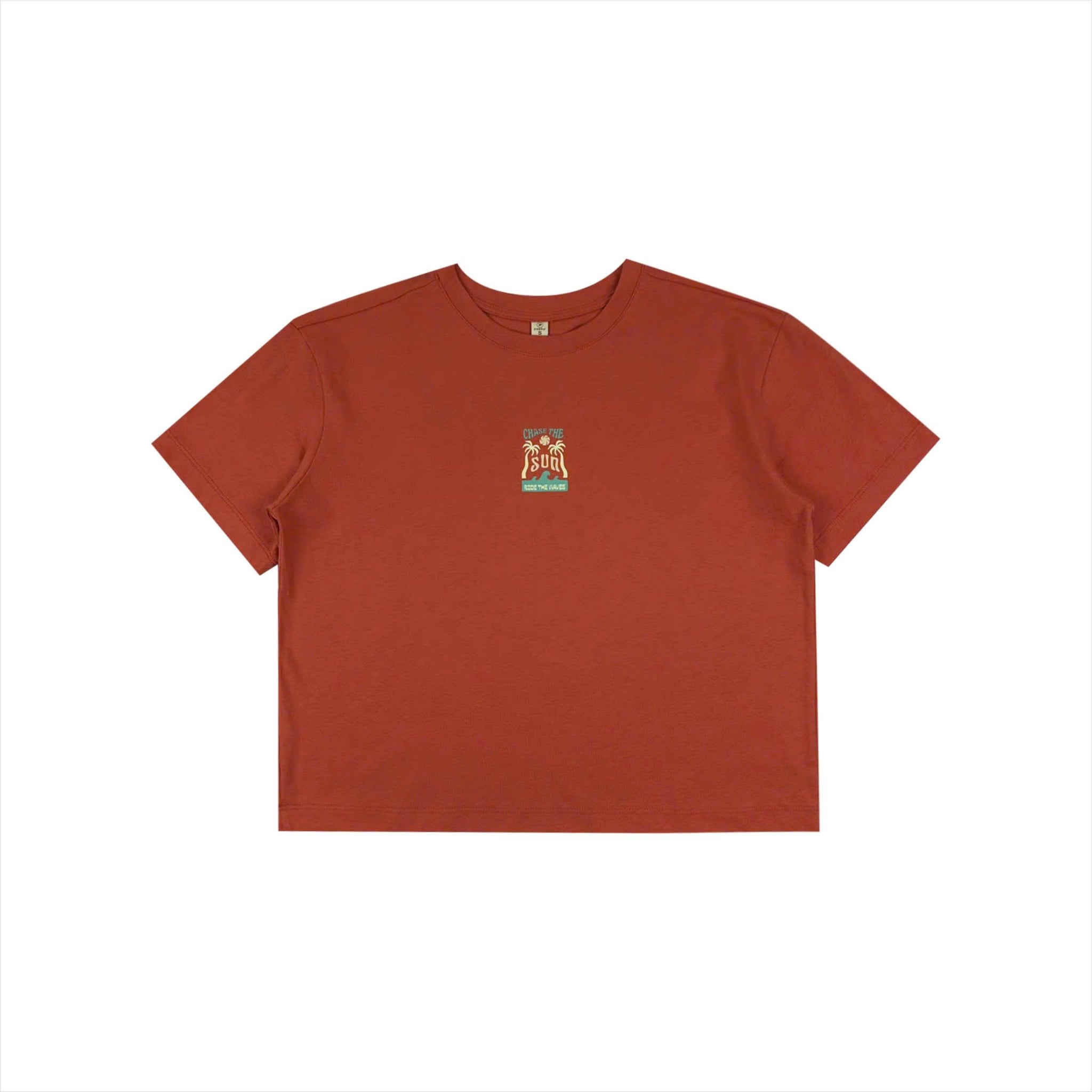 Áo thun nữ Papka 3037 form croptop màu cam với hình in Chase the Sun đầy trẻ trung và tươi mới