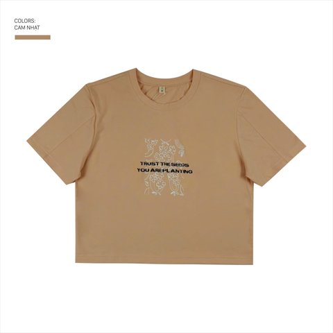 Áo thun nữ PAPKA 3038 màu hồng cam form Croptop Baby Tee in hoa trẻ trung và năng động