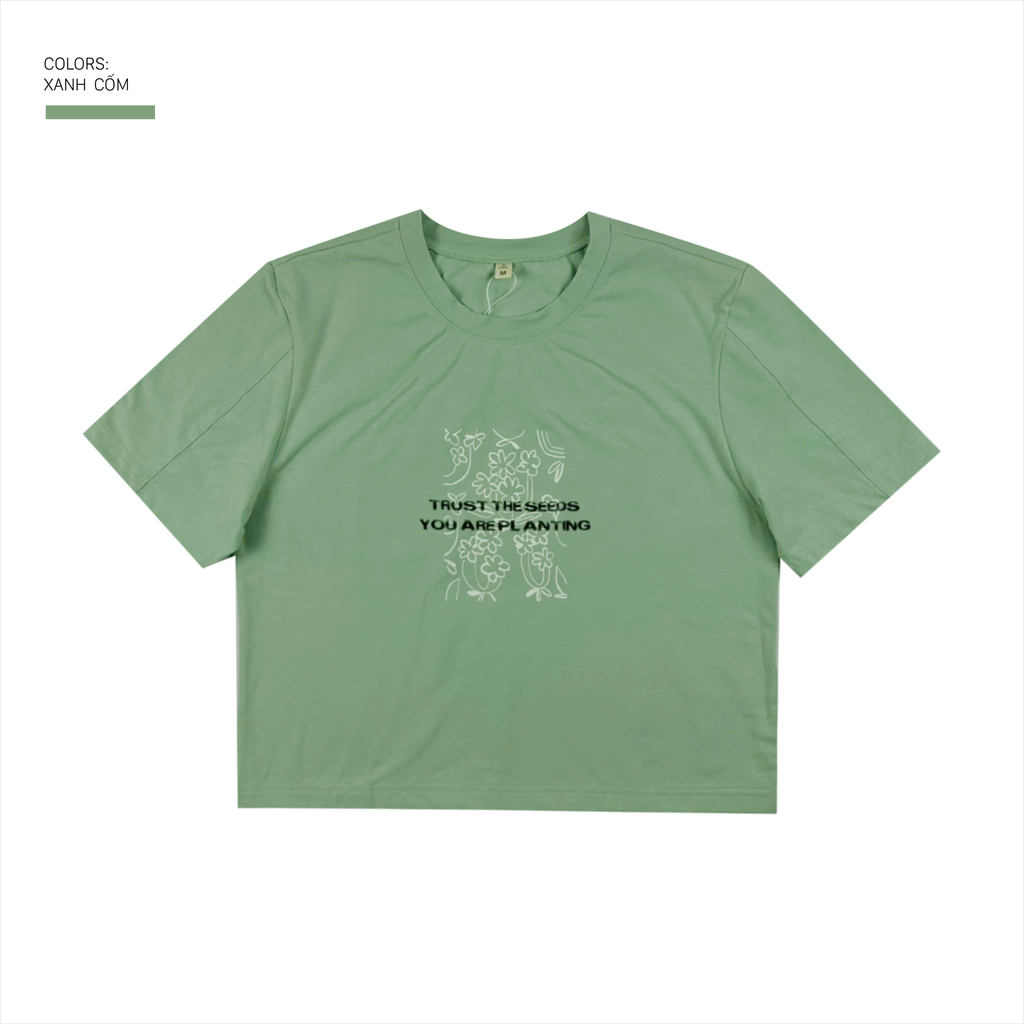 Áo thun nữ PAPKA 3038 màu xanh lá form Croptop Baby Tee in hoa trẻ trung và năng động