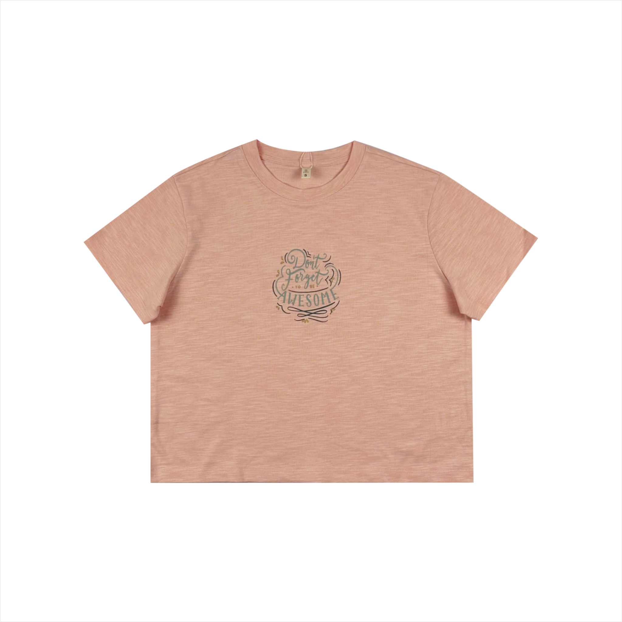 Áo thun nữ Papka 3040 màu hồng form croptop Boxy Tee "Don't forget to be awsome" trẻ trung mềm mại và năng động