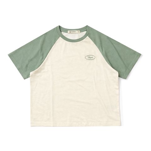 Áo thun nữ PAPKA 3047 phối Raglan màu xanh lá chất Cotton 100% trẻ trung năng động