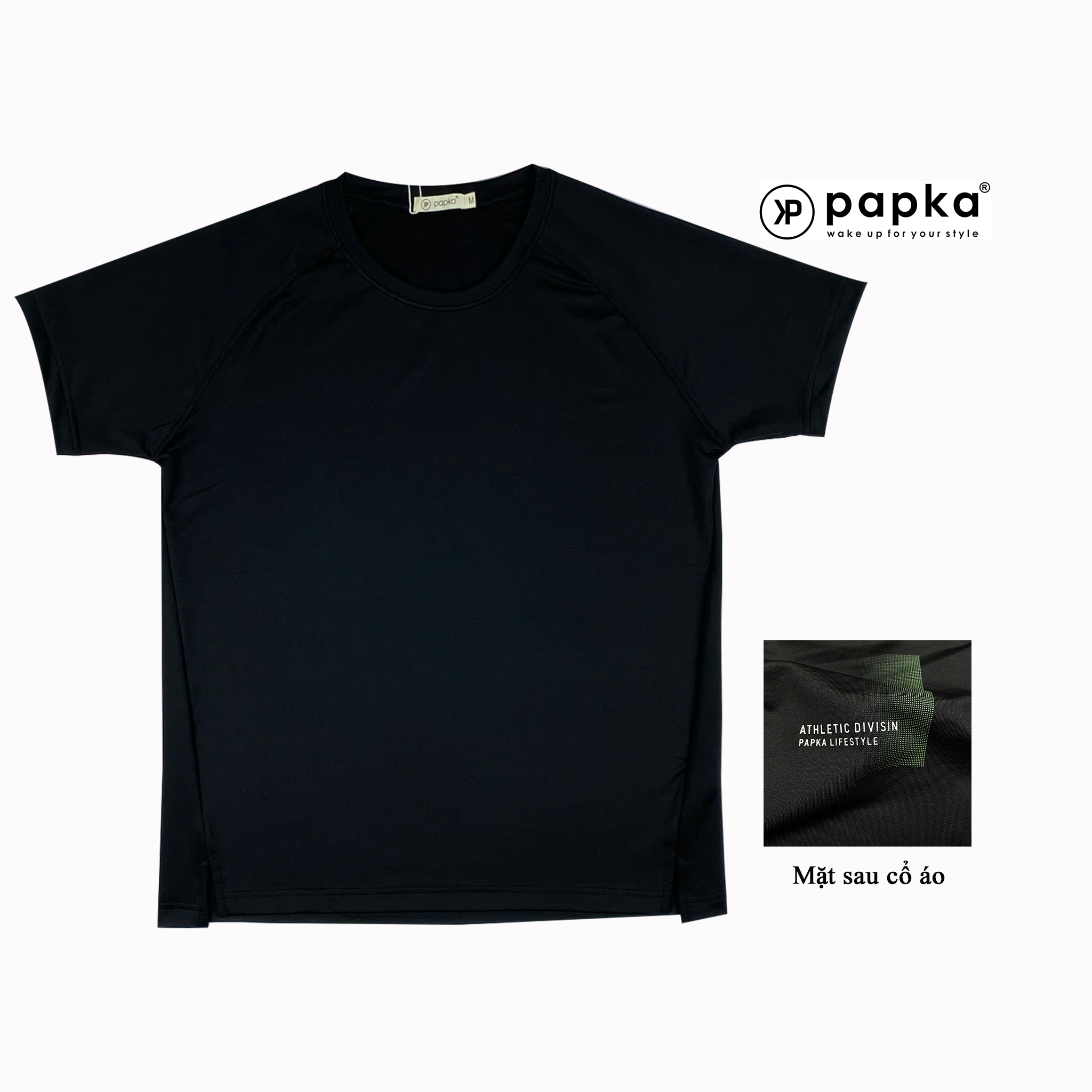 Áo thun thể thao nam Papka 1041 màu xanh đen chất polypique vô cùng thoải mái, bền màu và thấm hút tốt phối hình in sau