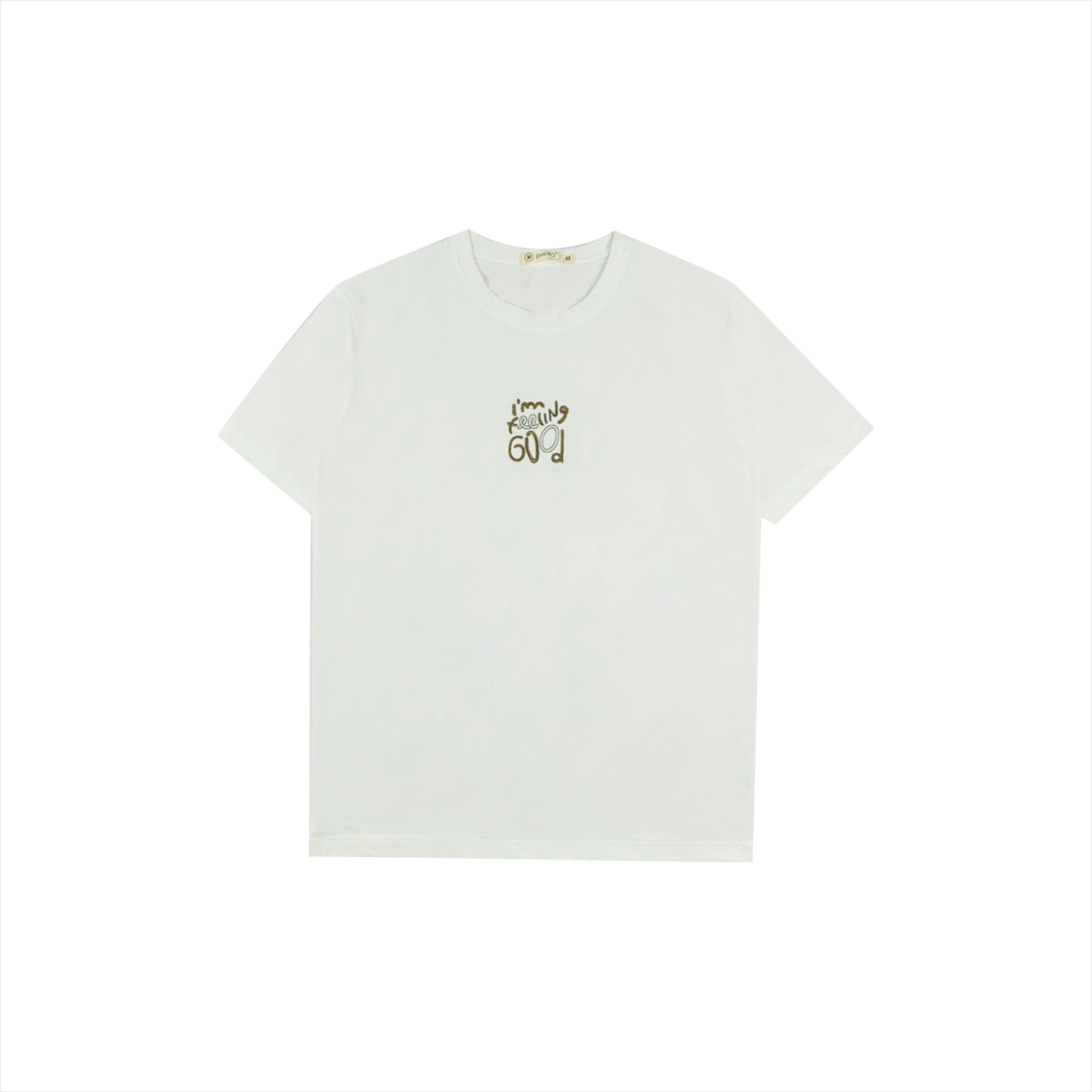 Áo Tshirt nam PAPKA 1076 màu trắng chất Cotton PC in chữ Im Feeling Good