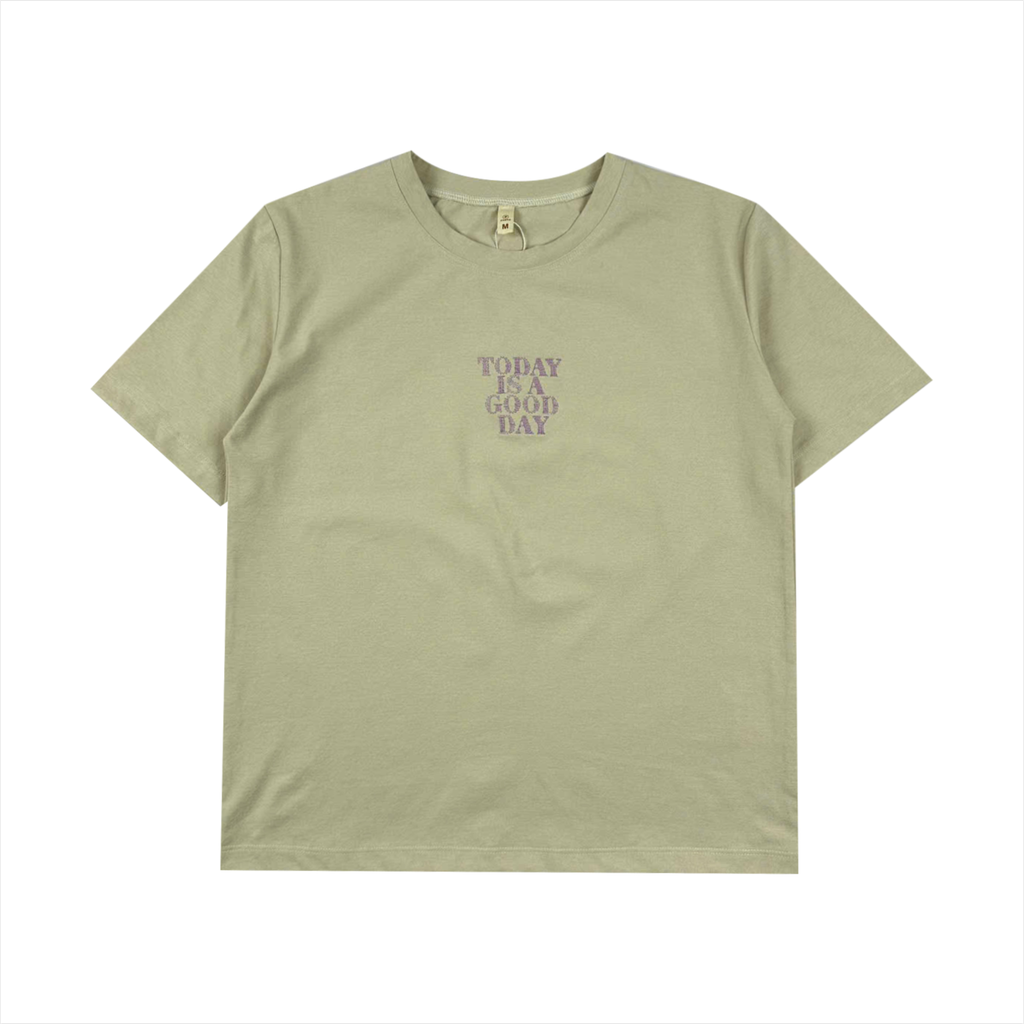 Áo Tshirt nữ PAPKA 3043 màu kem form cơ bản chất vải PC Cotton thêu chữ Today is a Good Day