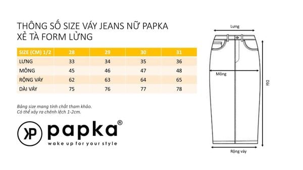 Chân váy Jeans nữ PAPKA 8011 màu xanh đậm xẻ tà năng động và trẻ trung