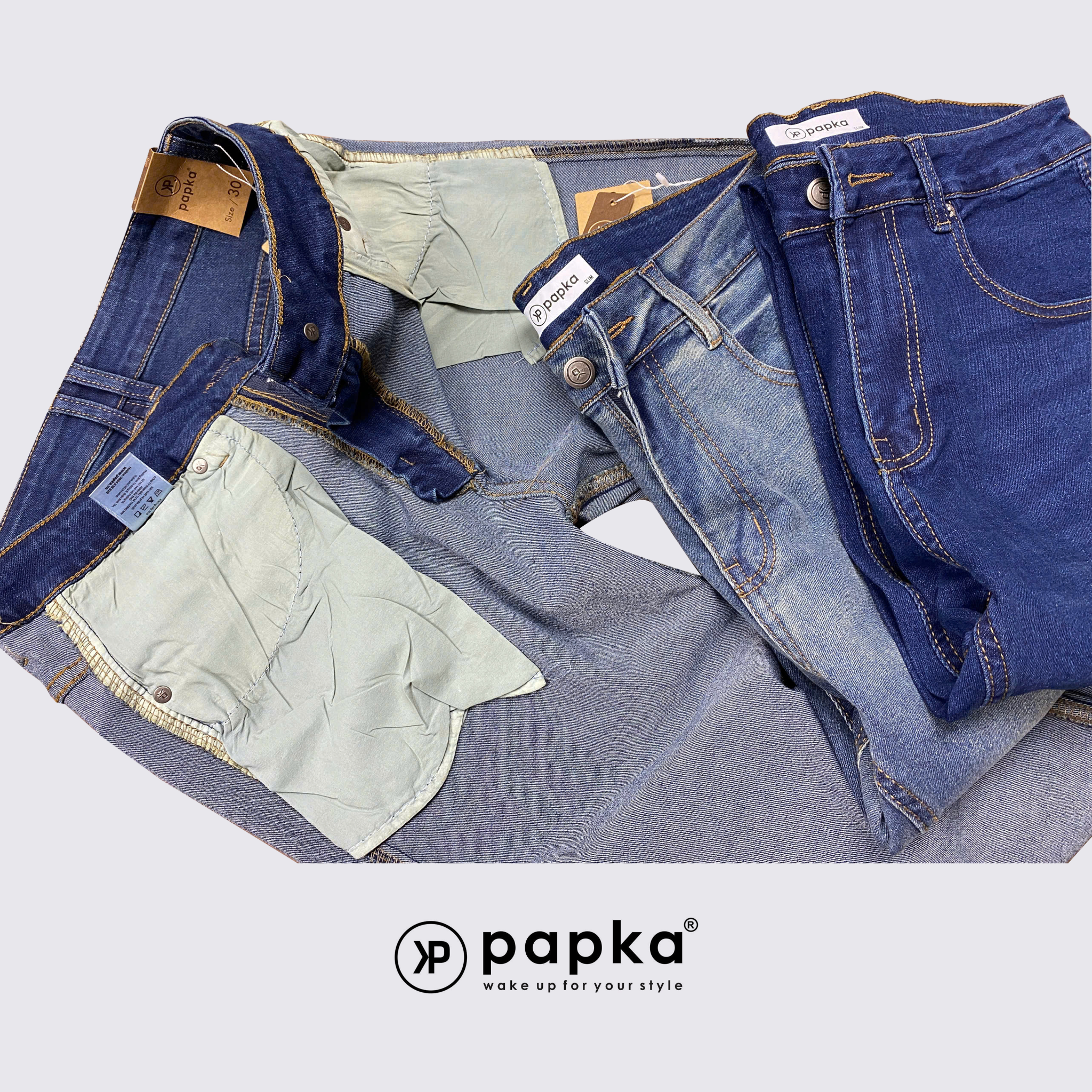 Quần jeans nam Papka 2038 màu xanh đậm form slim với độ ôm vừa phải tạo sự năng động và thoải mái