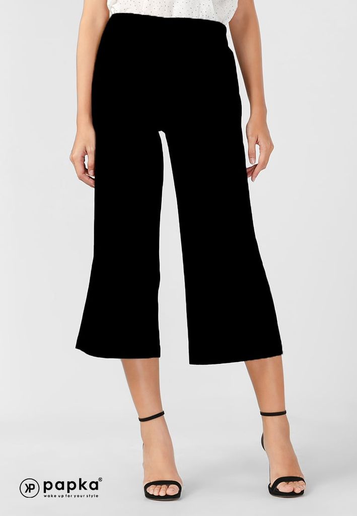 Quần ống rộng nữ Papka 4064 đen khóa kéo