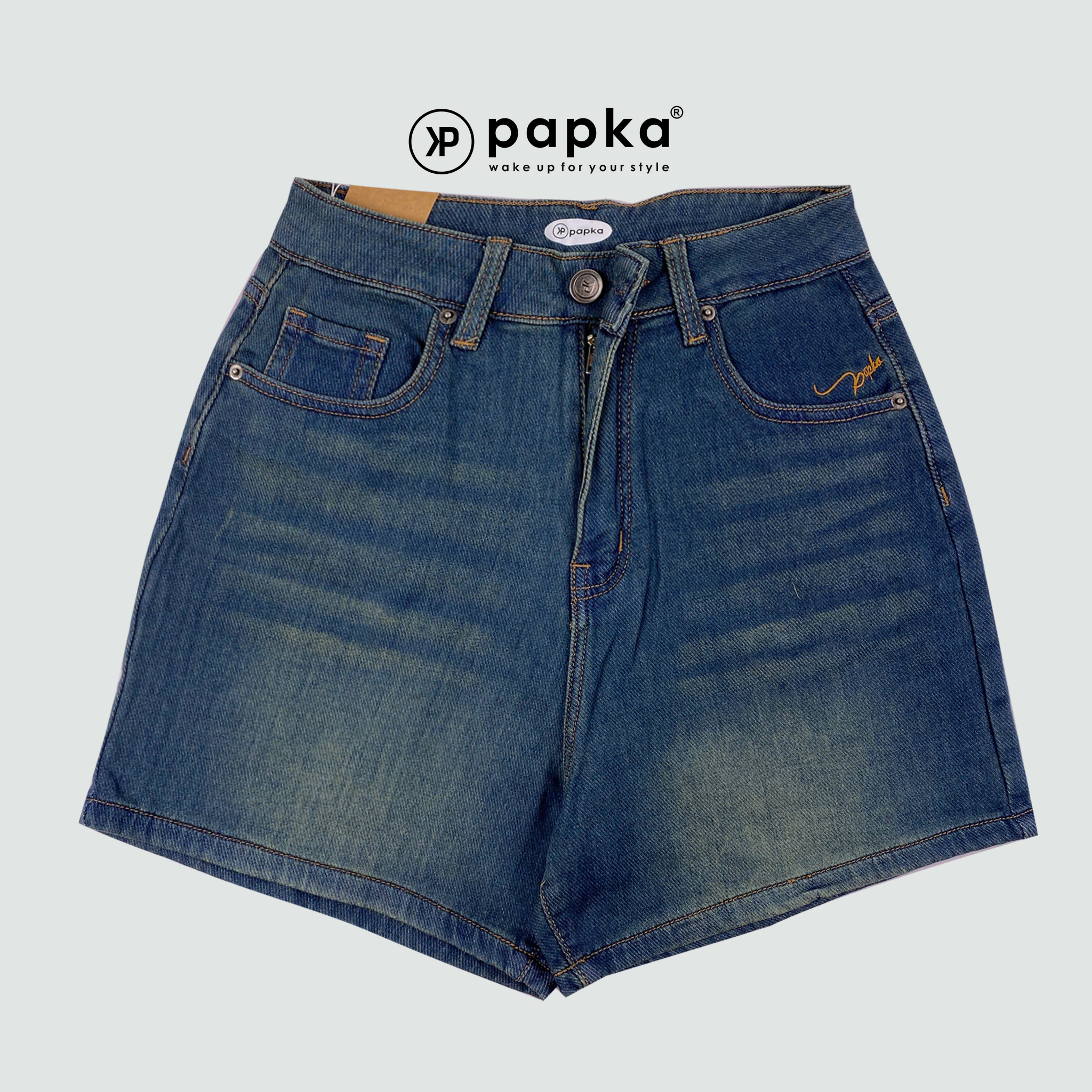 Quần short Jeans nữ Papka 4043 màu xanh rêu form chữ A rộng rãi co dãn tốt